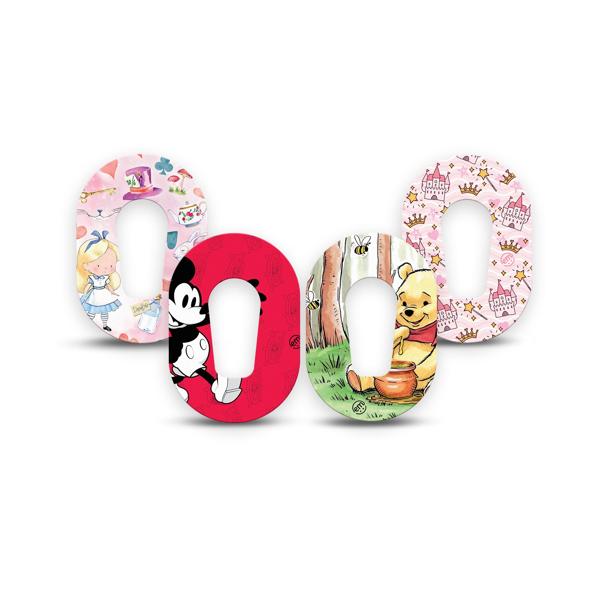 Pack contains one of each of our Alice in Wonderland, Winnie the Pooh, Magical Mouse, and Castles designs.