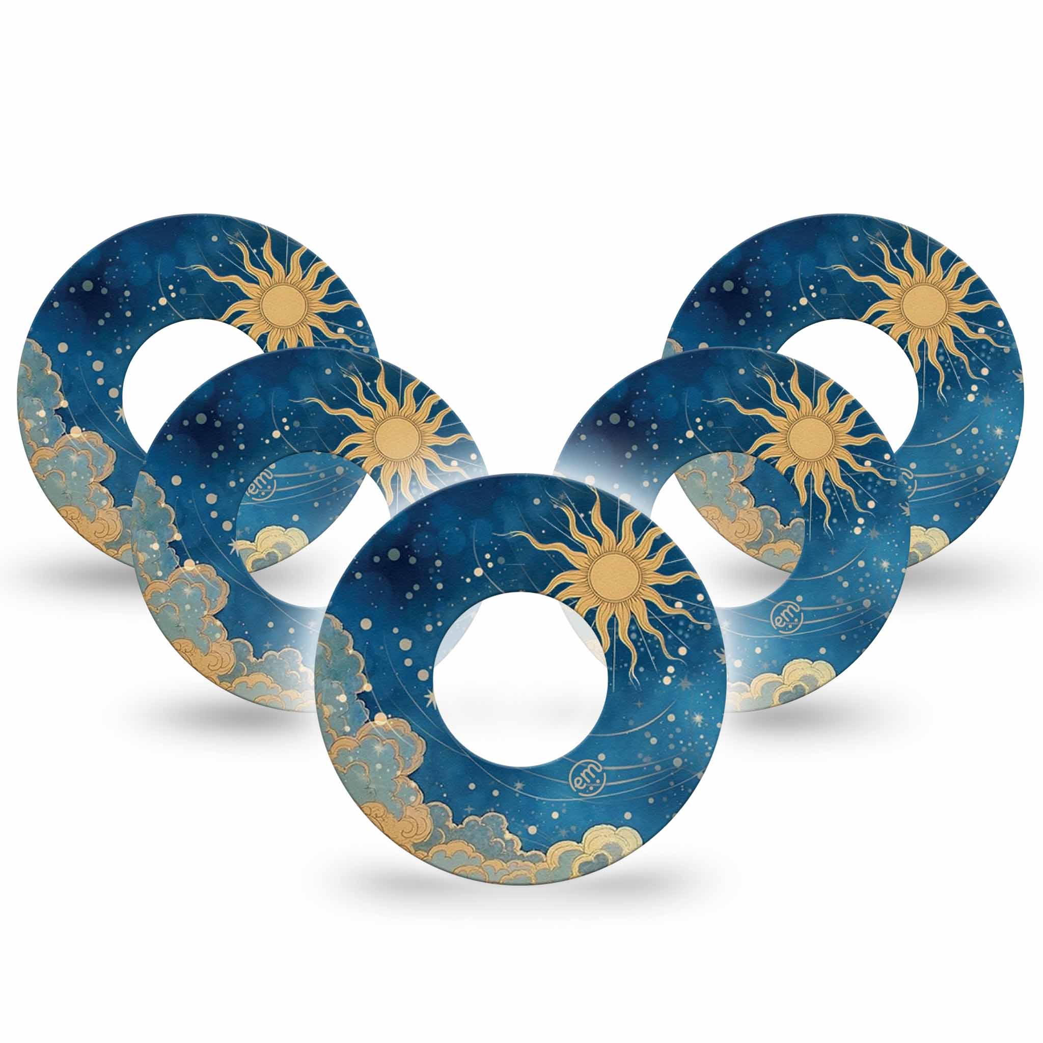 Let your style soar with ExpressionMed’s Mystic Skies patch, where soft blue tones, drifting clouds, and a golden sun come together for a dreamy sky-inspired look.